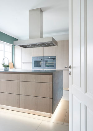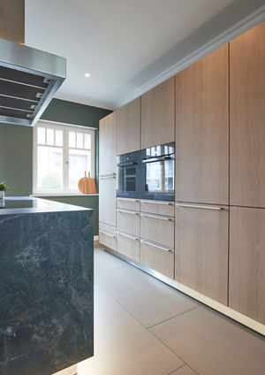 Projekt: BergedorfFronten: Eiche GrauDetails: Amazonica, Keramik 12mmGeräte: Miele
